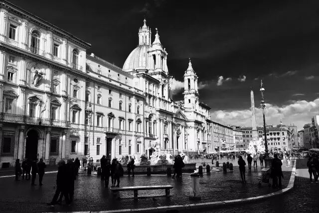 在纳沃纳广场(第四节题图)上欣赏过根据文艺复兴时期地理学者心目中四大洲的四条大河(尼罗河、恒河、多瑙河、拉普拉塔河)建造的四河喷泉之后,继续向东横穿老城区,路过万神庙、圣母堂,就走上了繁华的科尔索大道。
