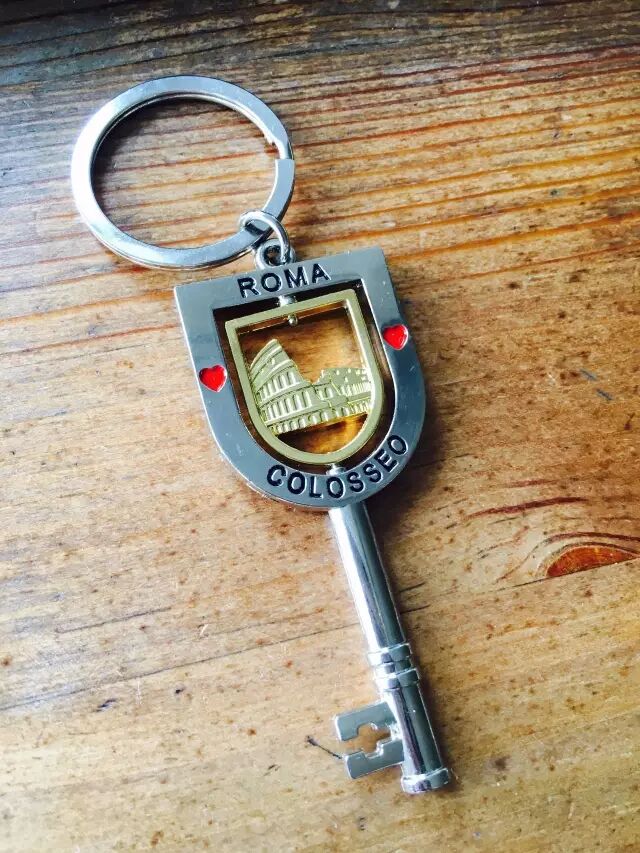 @dasKupfer离开罗马之前,在这里对@KajiRyouji说:“等下,摸个钥匙再走。”随后走进街边一家纪念品店,出来时手上拿着一把属于罗马的“钥匙”。