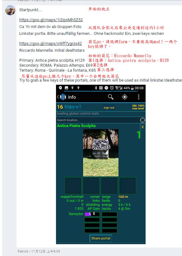 4点20,罗马的日落时刻。根据比赛规则,第二回合早已开始,但蓝色部落战队一直未得到明确的任务,只是转移到一个莫名其妙的8Po附近继续待命。这时@dasKupfer 突然抬头看到马路对面的披萨饼店,小声说了句“有吃的”就钻了进去。十多名队友纷纷效仿,各点披萨一张以慰问约等于没吃午饭的肚子。这时队长终于接到指令:前往防守200米外胡同里的某Cluster Portal。