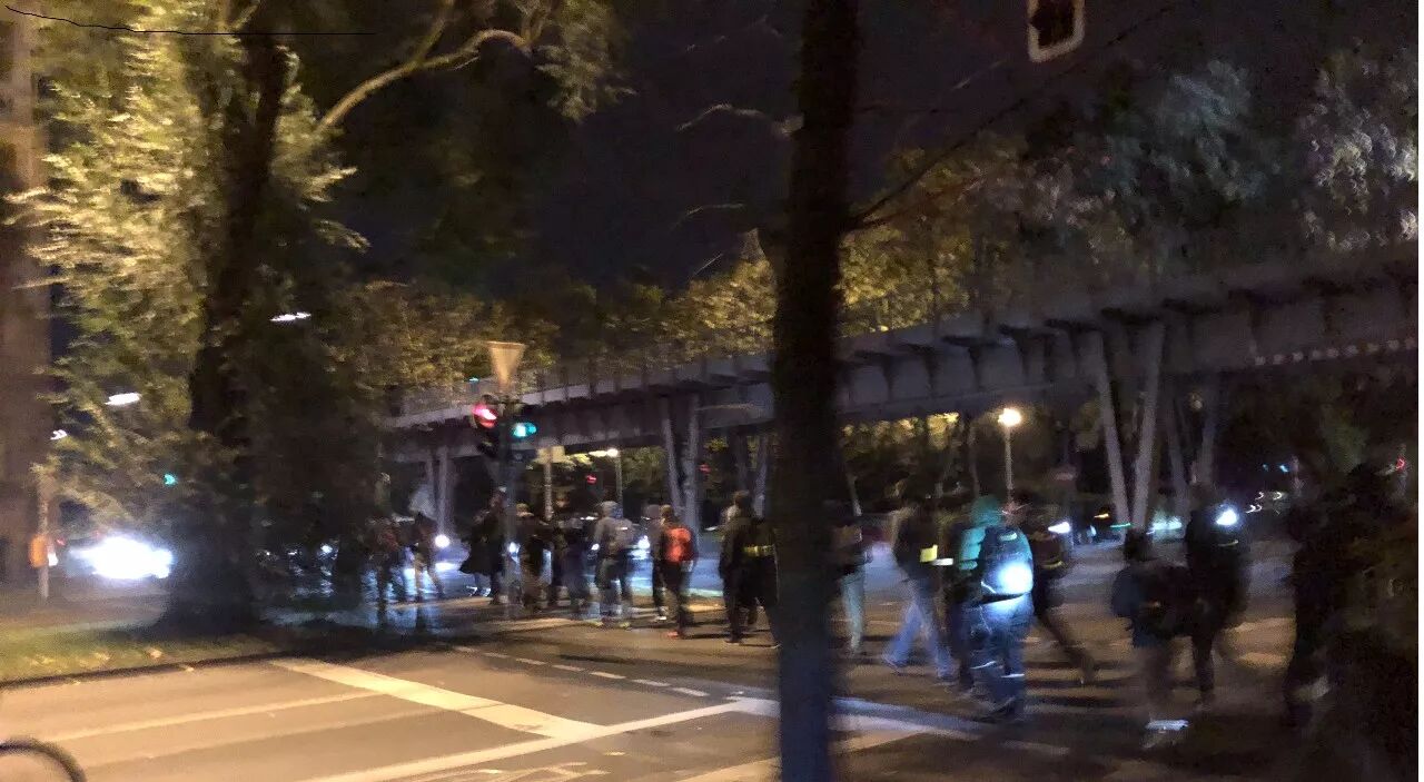 然后放我们去参与第二回合的正赛,在规定时间内再回到这个公园,正好这个公园旁边就是一个RES的研究点,所以我们全体ENL就在那里守点。我和另一个队友被分配到这个po范围最远处不停努力放脚。我是太累了加上已经能感觉得到ENL总的参加Anomaly的人比RES少太多要输,而且ENL Urban Team连这个研究点都打不下我怎么去放脚,所以很咸鱼地就在深秋的柏林街头站着睡觉。