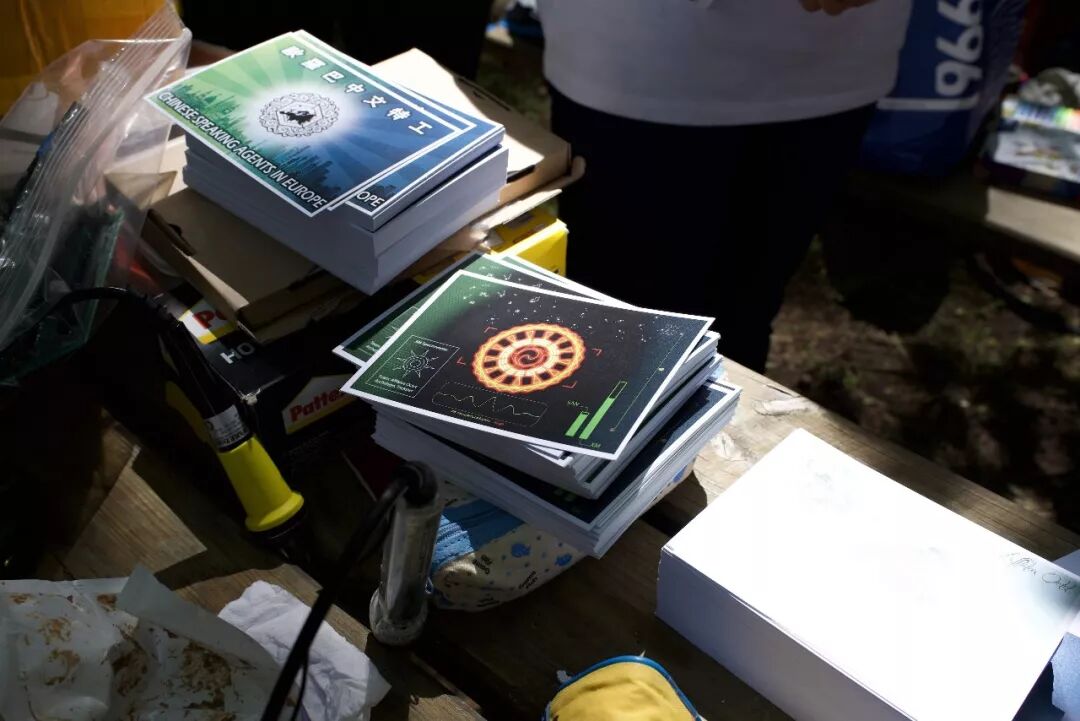 没有被送出去的明信片变成了我们独有的 SWAG,和免费的 Biocard 放在同一桌上,像商品一样陈列在被废弃的流水线上。