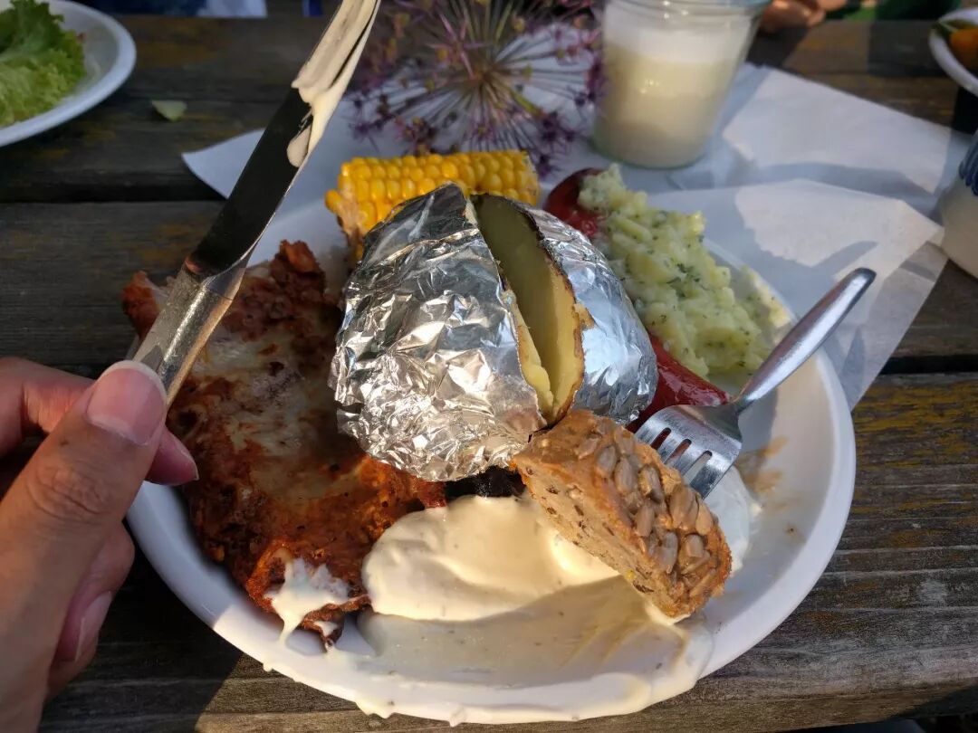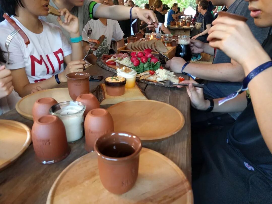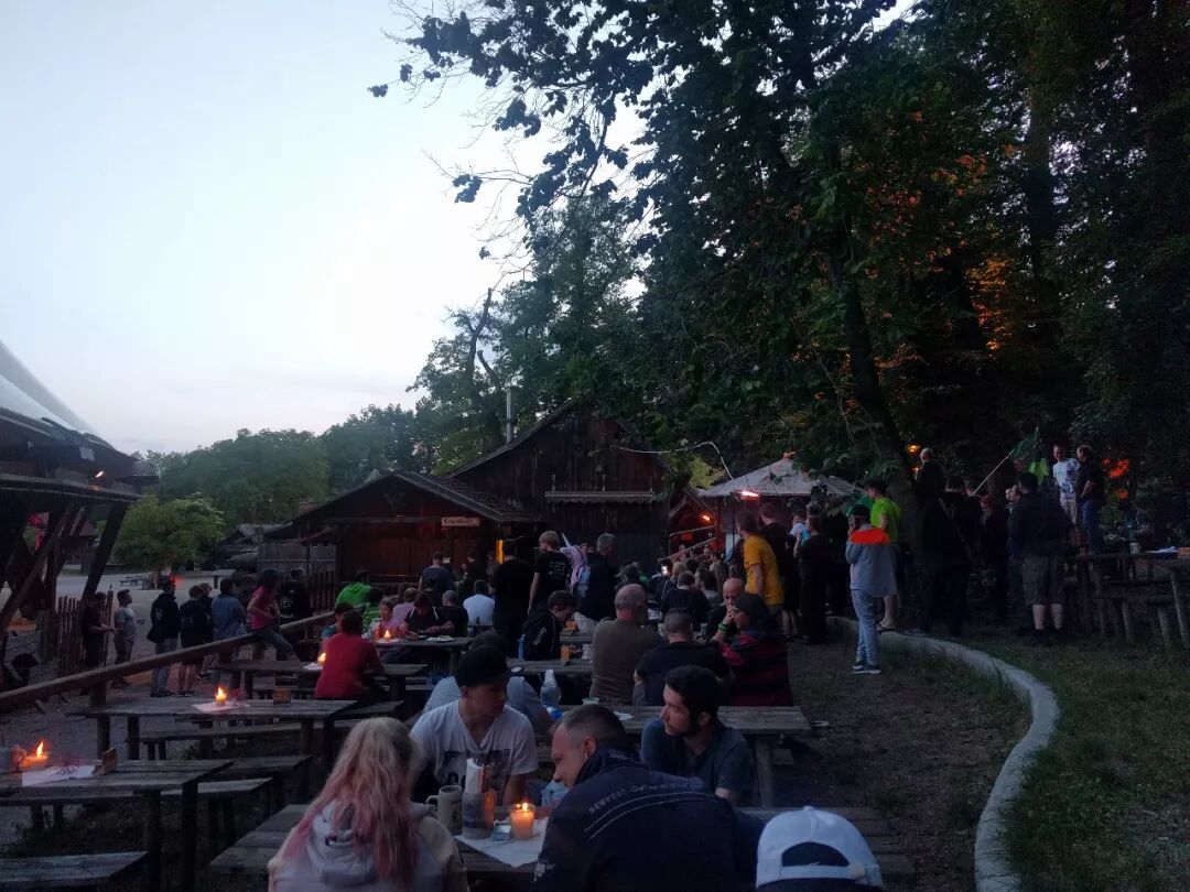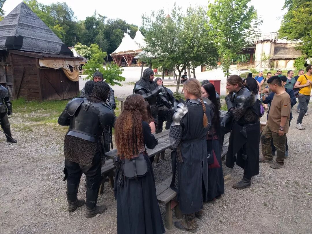 回程再入中世纪主题营地,开饭了!!!烧烤自助!!!中途我们英吉利三兄弟得知酒水免费,三人端回来了7杯各色饮料。吃得开心。