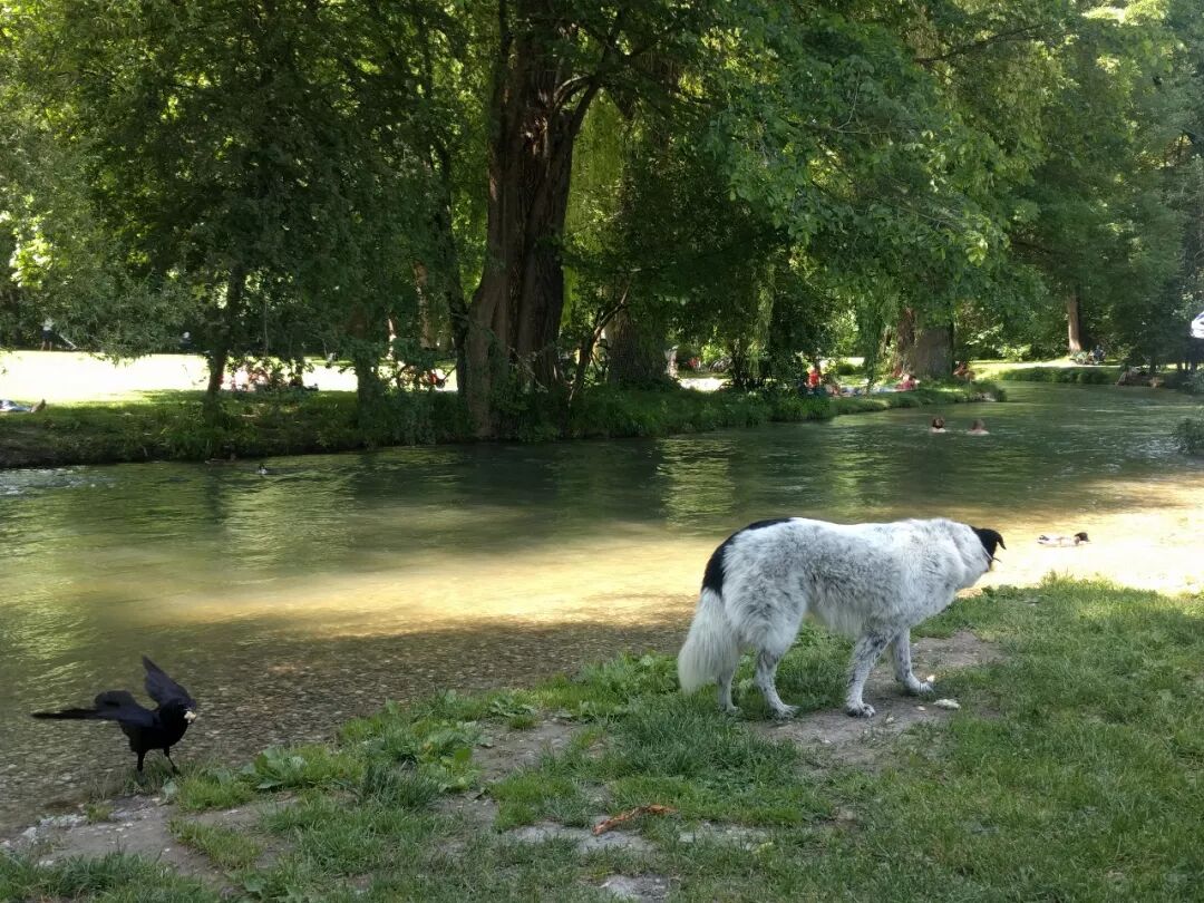 任务还在继续,中途拐到了全球面积最大城市公园之一的慕尼黑英式花园。园中人们在草坪上晒着太阳,在湍急的水流中戏水,甚至于在步道上裸走.....