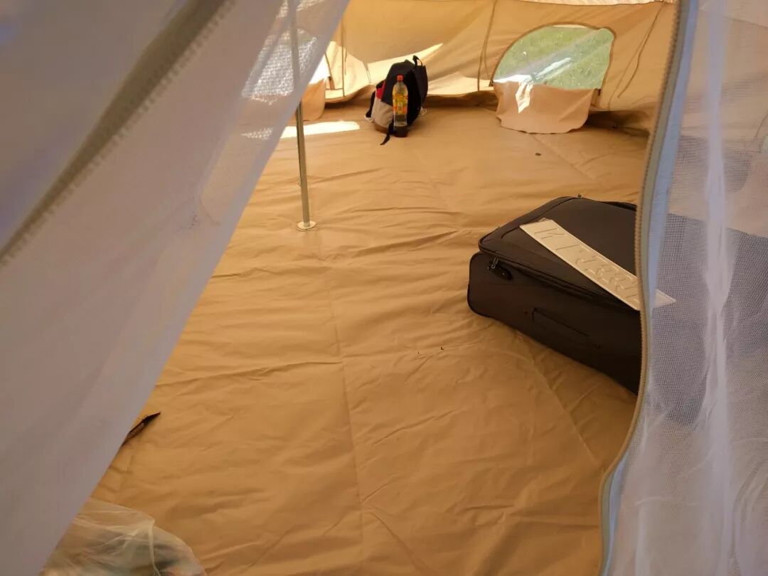 不多时到站,出门(车站并没门...)寻找我们的滴滴司机。我还在走神时,小伙伴竞已经发现了坐在车内的老司机@AV139。然后,放入行李后,老司机把我当成了@鸮的送行朋友2333,琢磨着怎么处理我。(我衣服上还印着Via Noir Seoul诶)路上,老司机充分展示了车技,乘客们跟着节奏晃起了头,眨眼间就到了营地门口。签到后,被领到了帐篷处放东西。