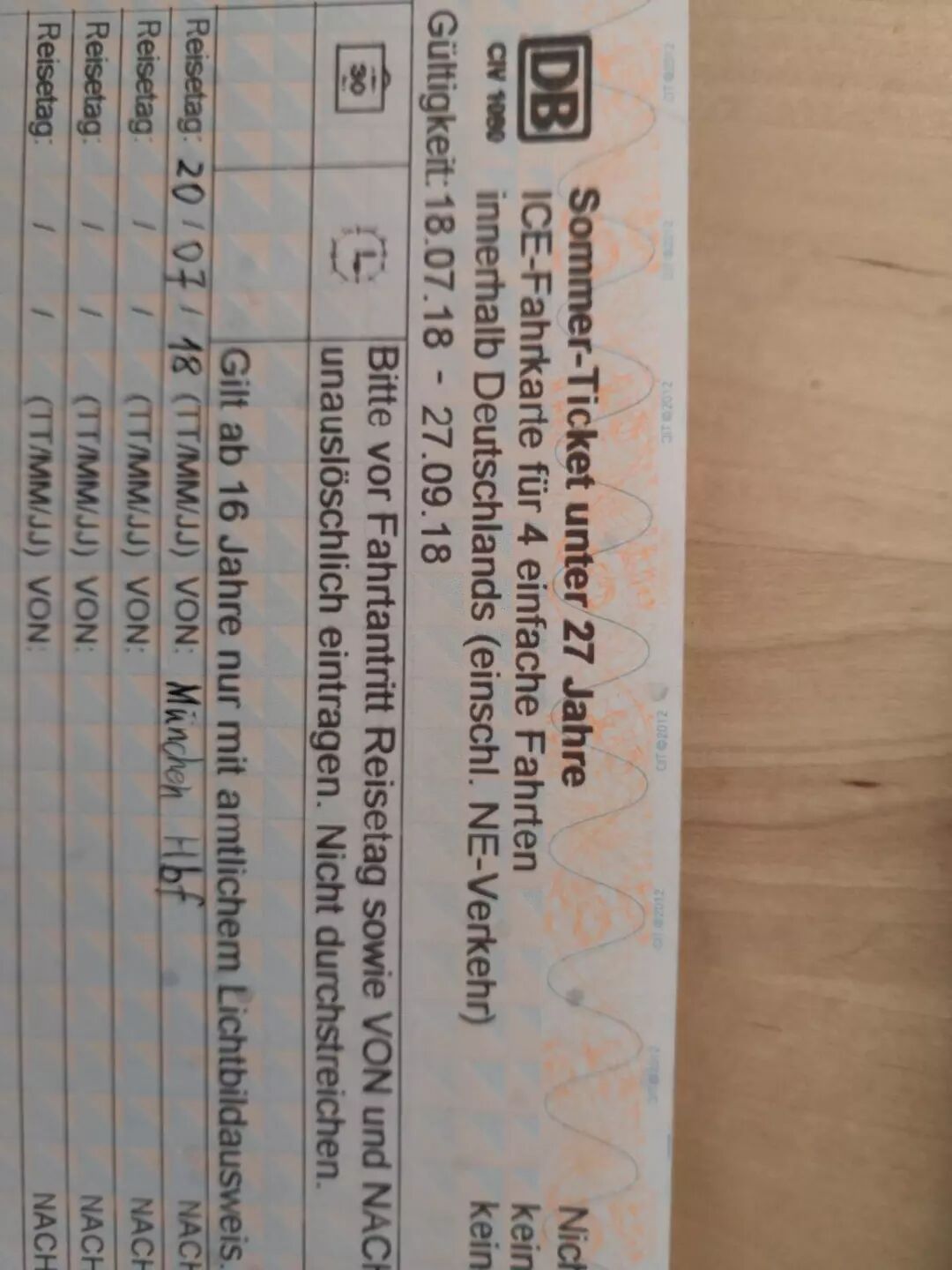 本来我并不准备去柏林和汉堡NL1331MeetUp,然而在饭桌上++(@AV139)开始了蛊惑。我连忙表示没提前买火车票,现在买票单程100多欧买不起。然而++不紧不慢地掏出一张纸,“SommerTicket了解一下,只要96欧,德国境内坐四程。”