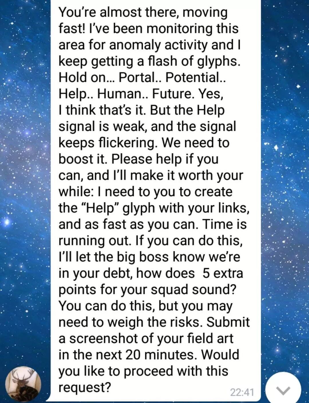 在任务过程中还会在群里收到额外任务,队员们要决定是否完成。完成以后会有额外奖励。但是也要考虑完成支线任务会不会导致主线任务无法完成。