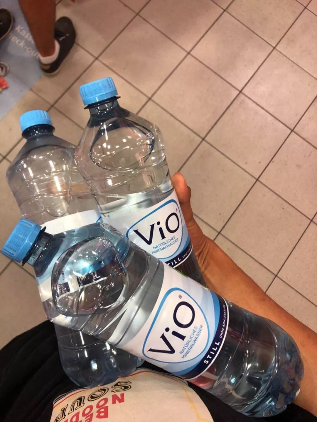 在柏林逛了一圈以后,正打算去柏林的大巴站。这时才想起了 AV 大佬的嘱托:两瓶无气的 VIO 1 L 或者 1.5 L. 我只好就近寻找一家超市,结果那么大个 Rossman 没有卖 VIO 的。我说我买两瓶别的,结果 AV 大佬此时还在飞机上无法回复我。眼看着别的超市就要下班了,我只好先买了两桶别的水。AV 大佬下飞机以后得知不是 VIO 的水,于是在飞机场找了找。最后还是买到了。但是,飞机场一瓶水 4,6 欧。抢劫啊!!
