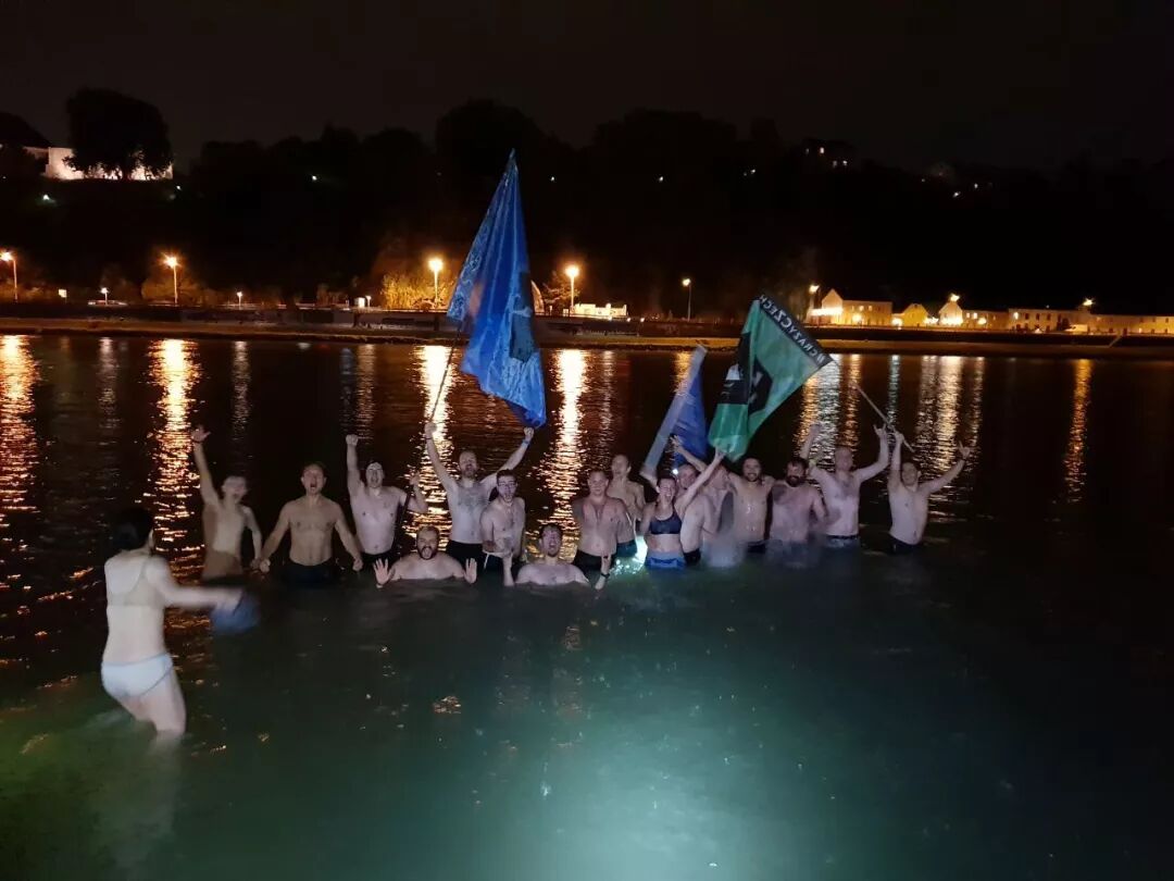 与此同时,刚才下水的伙伴们,在那一边居然又纷纷跳进水,拍起了合影。