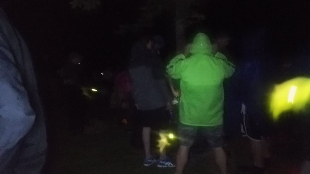 不过幸好还是及时到达。这个公园一片漆黑,抬头只能看见密布的乌云,被城市的灯火照得昏黄。一盏盏手电亮了起来。