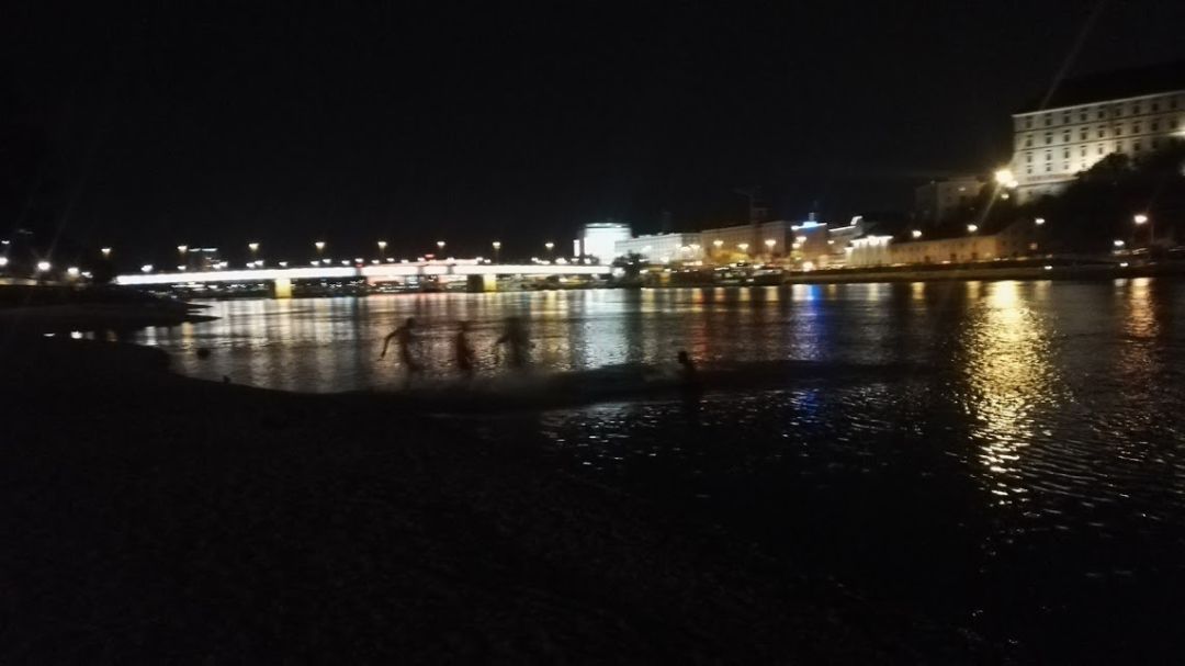 公园里没有灯。多瑙河对岸灯火灿烂的背景下,一个个黑色的影子从人群中窜出,在空中跃起,然后扑通一声打碎了他们在水中摇曳的倒影。