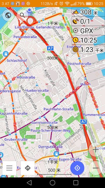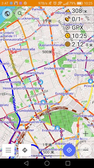 这里一定要安利万能离线地图 Osmand~ 。原来热心网友早已绘制了林茨的市内交通路线。仔细研究了一会,果然发现酒店门口就有巴士线路 (
