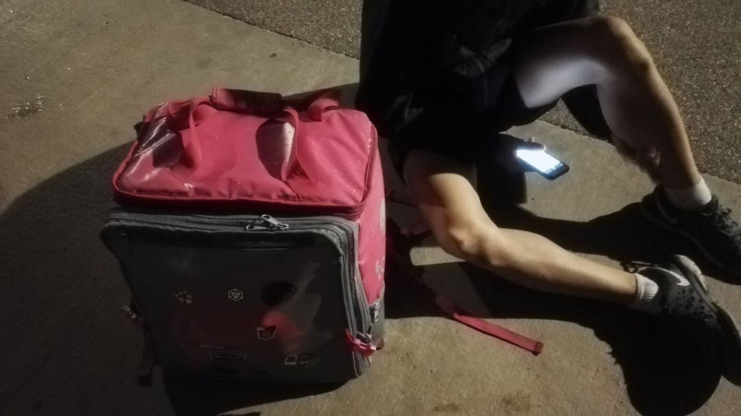(对抗赛结束,放下背包,正在研究下一个去处的外卖 GoRuck 小哥)