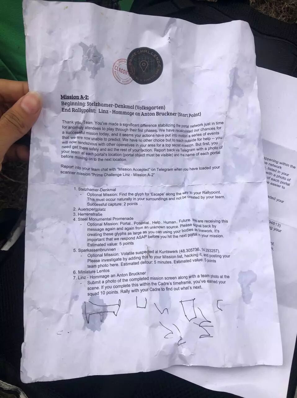 收到任务纸后我们便开始了任务,在找任务起点的时候同一地方的 Portal 太多,而且 Mission 列表里也有很多其他的拼图 Mission. 后来我们通过看 IM 找起点 Portal,从 Portal 点进 Mission 页面。但是在这一个点上我们就浪费了至少 10 分钟。