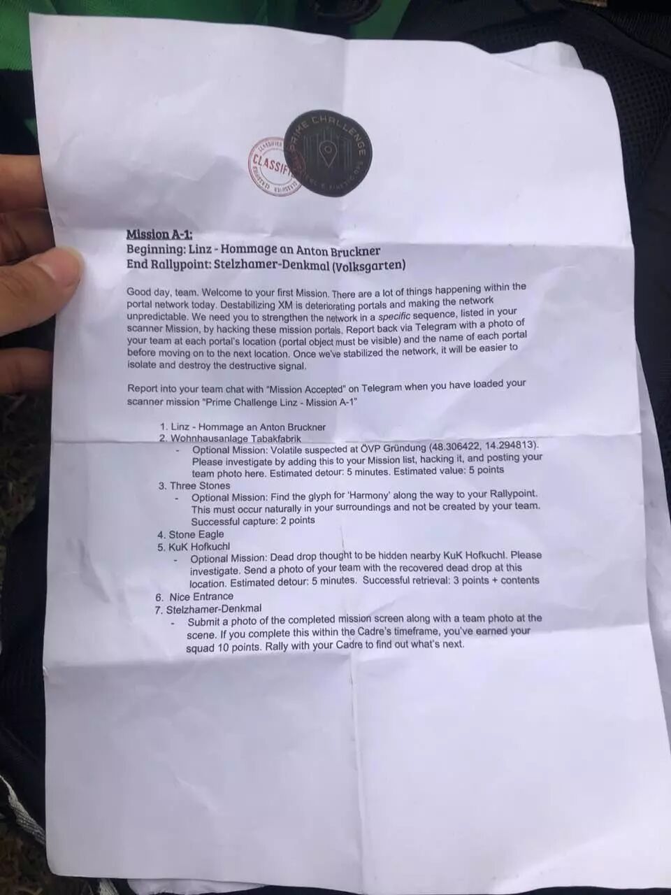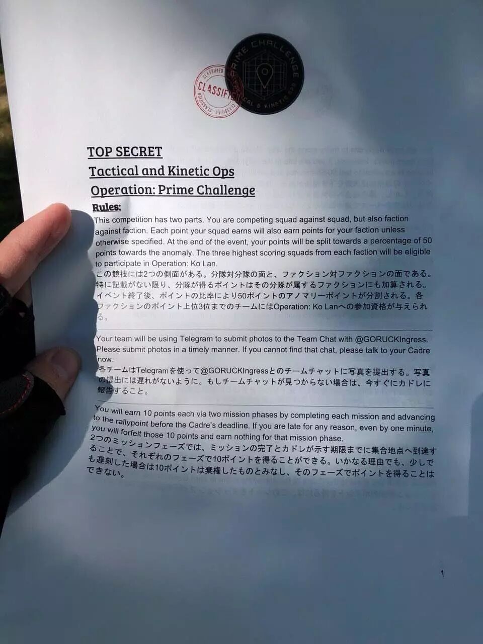 由于纸上的任务描述不够完善,我们队内对于是否要把任务 Portal 攻下并升级成我方阵营颜色的 7 级产生了争执。最后通过询问 TG 群组内的统计员,得到无论阵营只要是 7 级 Portal 就行的结论。